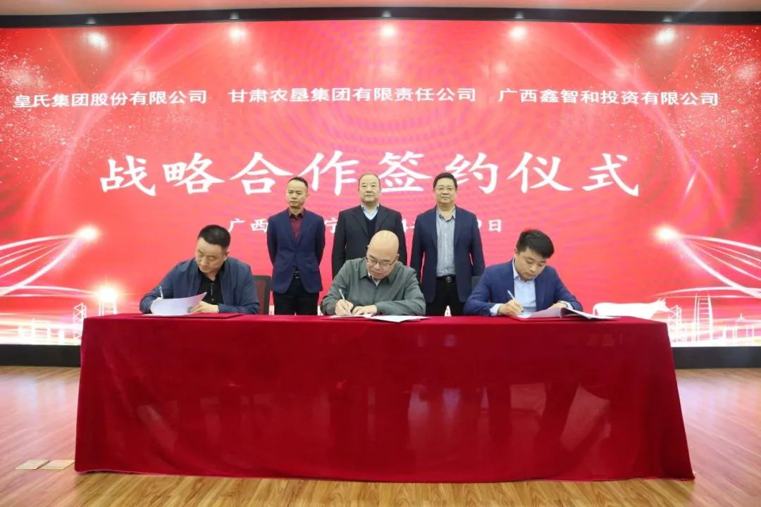 在實(shí)現“強強聯(lián)合、互利共贏(yíng);降本增效、持續發(fā)展”的共同戰略目標上,皇氏集團、甘肅農墾集團、廣西鑫智和投資有限公司經(jīng)友好協(xié)商,本著(zhù)長(cháng)期合作、優(yōu)勢互補的原則,達成共識,構建可持續發(fā)展的戰略合作伙伴關(guān)系。在所有與會(huì )人員的見(jiàn)證下,皇氏集團聯(lián)席總裁王鶴飛,甘肅農墾集團運營(yíng)管理部部長(cháng)郭守斌,廣西鑫智和投資有限公司總經(jīng)理蘇牧共同簽訂三方戰略合作協(xié)議。