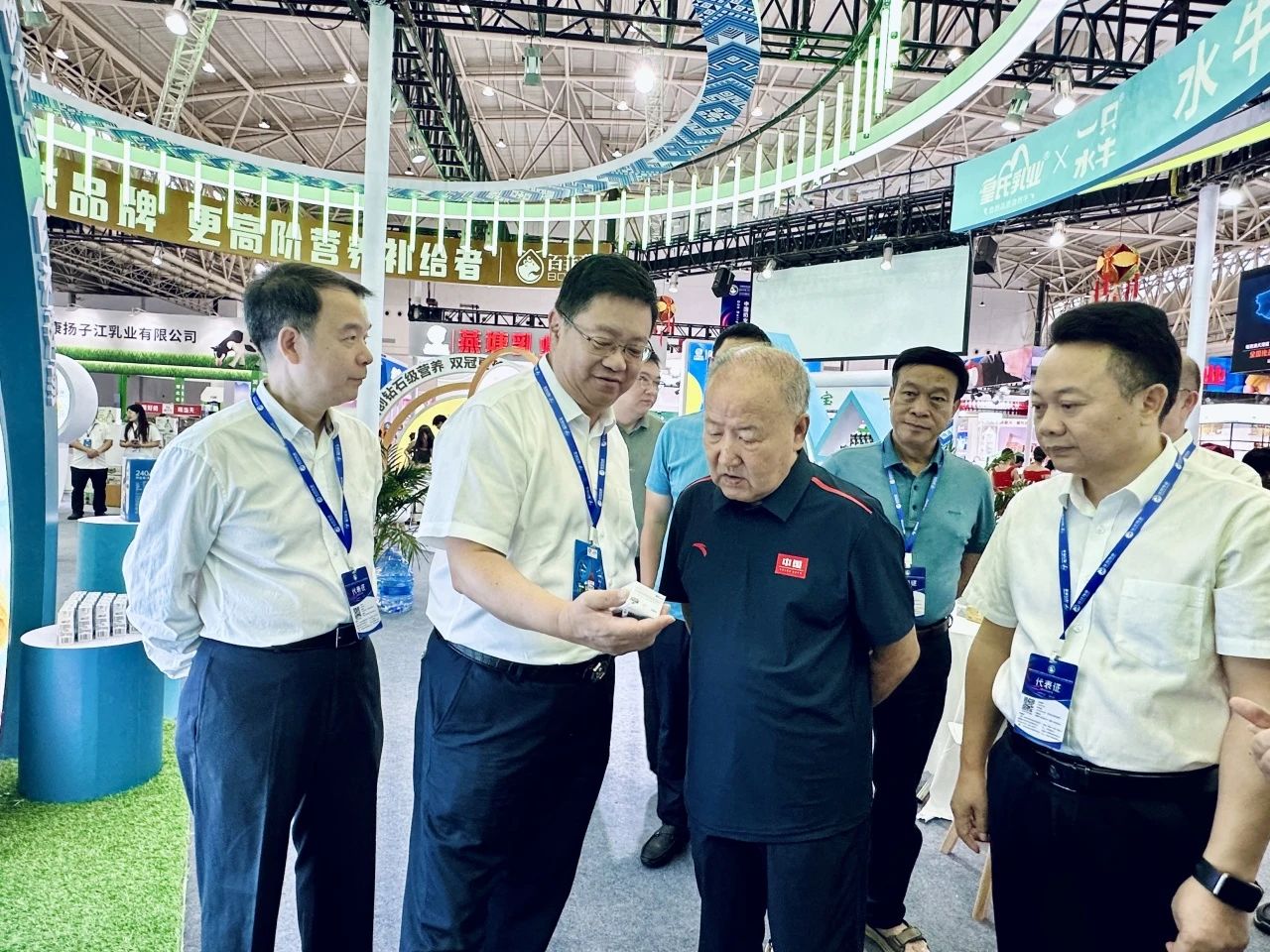 皇氏集團董事長(cháng)黃嘉棣、副總裁滕翠金、謝秉鏘、伍云等領(lǐng)導,在展區現場(chǎng)向農業(yè)農村部黨組成員、副部長(cháng)馬有祥、原農業(yè)部常務(wù)副部長(cháng)劉成果、農業(yè)農村部食物與營(yíng)養發(fā)展研究所所長(cháng)王加啟等領(lǐng)導、專(zhuān)家推薦了皇氏乳業(yè)水牛奶,在場(chǎng)領(lǐng)導均對皇氏乳業(yè)的水牛奶給予了高度肯定。