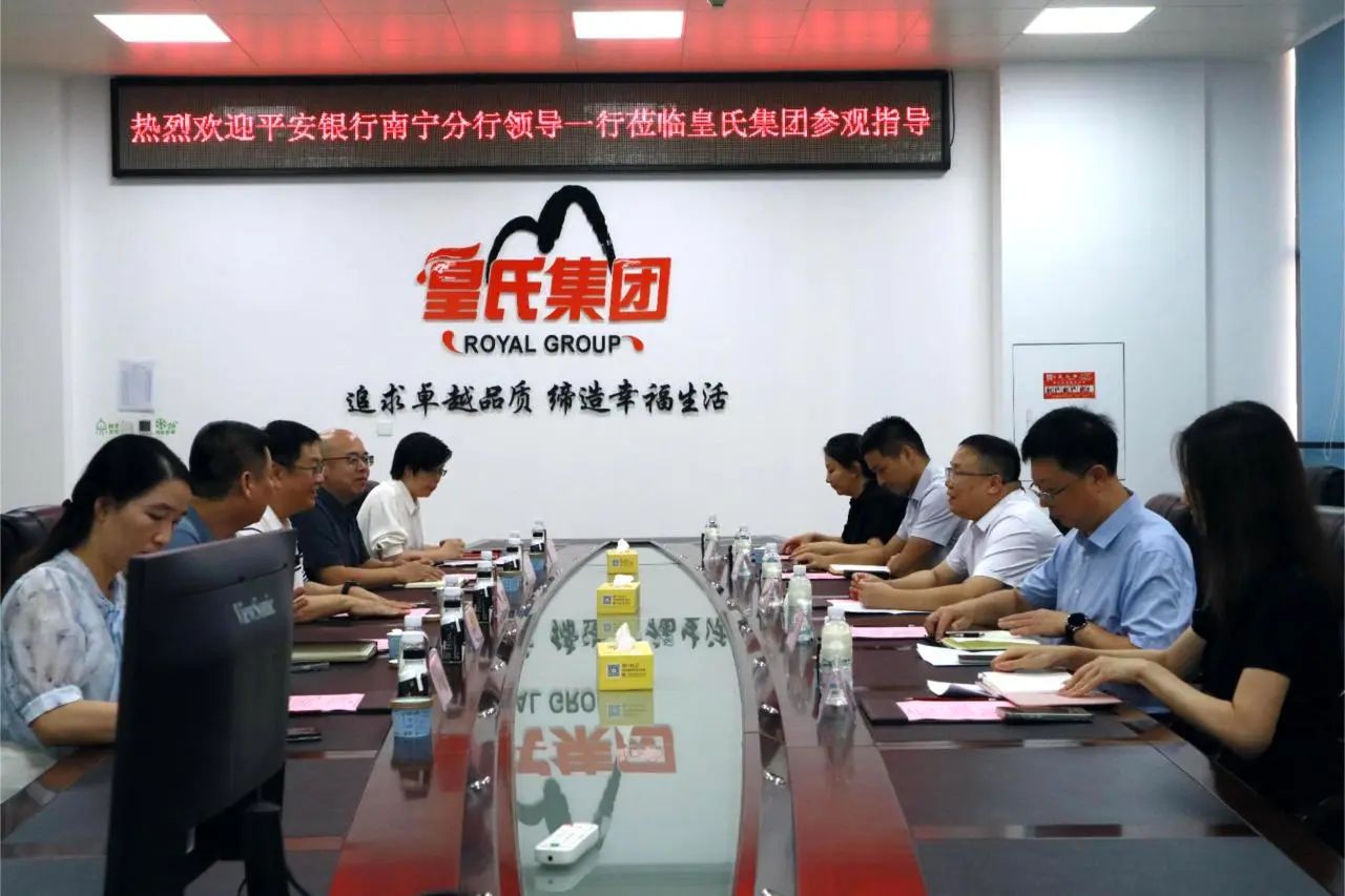 8月26日,平安銀行南寧分行黨委書(shū)記、行長(cháng)陳亮一行蒞臨皇氏集團調研指導,皇氏集團董事長(cháng)黃嘉棣,皇氏集團聯(lián)席總裁、乳業(yè)集團總經(jīng)理王鶴飛,皇氏集團財務(wù)總監呂德偉等公司領(lǐng)導陪同調研。