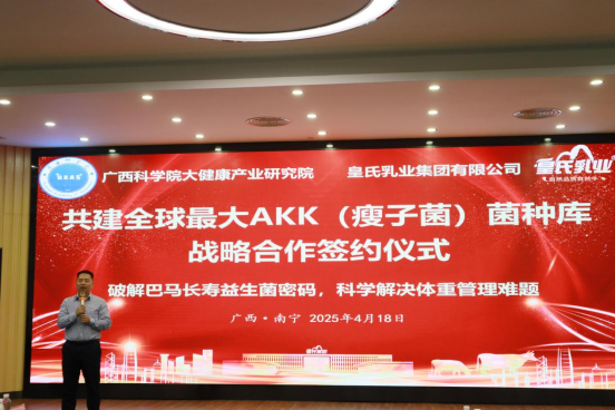 為積極響應國家“健康中國2030”戰略,加速AKK菌從“實(shí)驗室”到“生產(chǎn)線(xiàn)”的轉化效率,皇氏乳業(yè)與廣西科學(xué)院大健康研究所達成戰略協(xié)同,啟動(dòng)“全球最大AKK菌種庫”共建計劃。