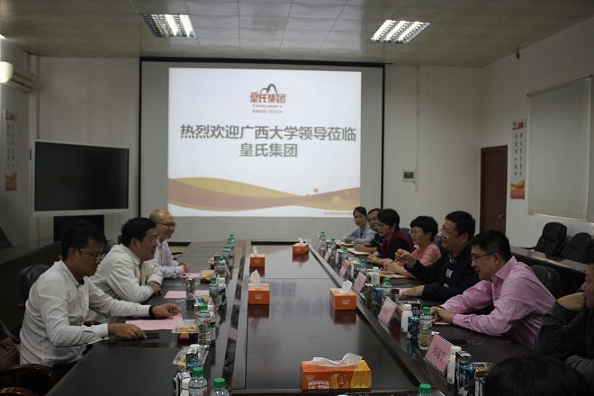 10月19日上午,廣西大學(xué)趙躍宇校長(cháng)等一行4人到皇氏集團調研考察。集團董事長(cháng)黃嘉棣、執行總裁陳易一、副總裁伍云接待了調研組人員。