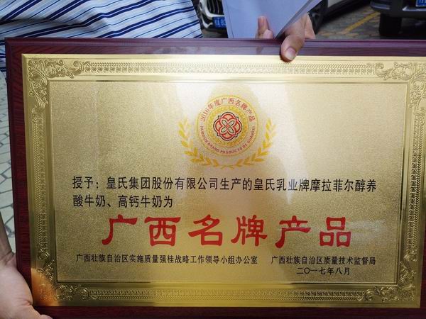 此次獲獎的摩拉菲爾·醇養酸牛奶、皇氏高鈣牛奶,在眾多的產(chǎn)品中脫穎而出,成為“廣西名牌產(chǎn)品”,既是對皇氏集團品質(zhì)的肯定,也是我們不斷砥礪前行的動(dòng)力?;适霞瘓F將會(huì )珍惜“廣西名牌產(chǎn)品”這個(gè)稱(chēng)號,在今后將嚴格企業(yè)質(zhì)量主體責任,不斷提高企業(yè)質(zhì)量管理水平和自主創(chuàng )新能力,追求卓越績(jì)效,發(fā)揮名牌產(chǎn)品生產(chǎn)企業(yè)的示范帶動(dòng)作用,履行企業(yè)的社會(huì )責任,為促進(jìn)全區經(jīng)濟發(fā)展做出更大的貢獻。