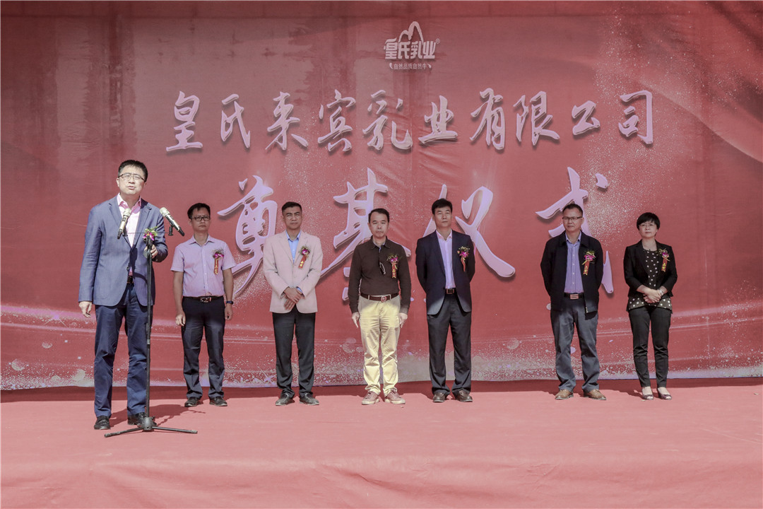 奠基慶典上,來(lái)賓市高新技術(shù)產(chǎn)業(yè)開(kāi)發(fā)區管委會(huì )書(shū)記黃世硬宣布奠基,皇氏集團股份有限公司執行總裁陳易一、皇氏集團來(lái)賓乳品分公司廠(chǎng)長(cháng)鄒南智分別發(fā)表講話(huà),為皇氏來(lái)賓高新區乳制品加工基地的奠基儀式表示慶賀。