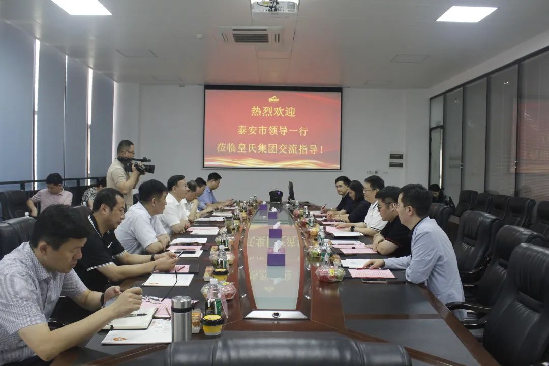 座談?wù)介_(kāi)始,黃嘉棣董事長(cháng)首先對泰安市委領(lǐng)導一行專(zhuān)程赴皇氏集團進(jìn)行合作洽談表示歡迎,對泰安市近年來(lái)經(jīng)濟社會(huì )發(fā)展取得的成就表示祝賀,對泰安市委、市政府給予的支持表示感謝。黃董介紹皇氏集團自成立以來(lái),充分發(fā)揮行業(yè)龍頭企業(yè)的責任擔當,從服務(wù)全區經(jīng)濟社會(huì )發(fā)展、促進(jìn)鄉村振興的高度出發(fā),不斷深化地企、政企合作力度,積極廣泛參與全區各地經(jīng)濟社會(huì )發(fā)展,取得了積極成效。經(jīng)過(guò)此次交流,期待雙方能夠進(jìn)一步深入交流磋商、深化地企合作,推進(jìn)項目盡早落地實(shí)施,實(shí)現共贏(yíng)發(fā)展。