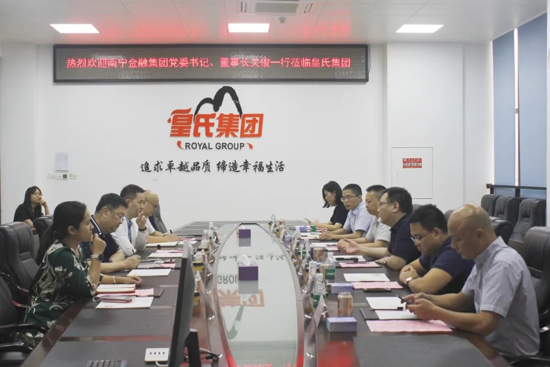 參觀(guān)結束后,雙方本著(zhù)“勠力同心,共謀發(fā)展”的目標在會(huì )議室進(jìn)行座談,皇氏集團董事長(cháng)黃嘉棣出席座談,與南寧金融集團黨委書(shū)記、董事長(cháng)關(guān)俊一行共同探討如何結合區域和自身特點(diǎn),實(shí)現規劃、產(chǎn)業(yè)、項目和效益新突破,共同激發(fā)釋放合作潛力,尋求共同合作發(fā)展機會(huì )。