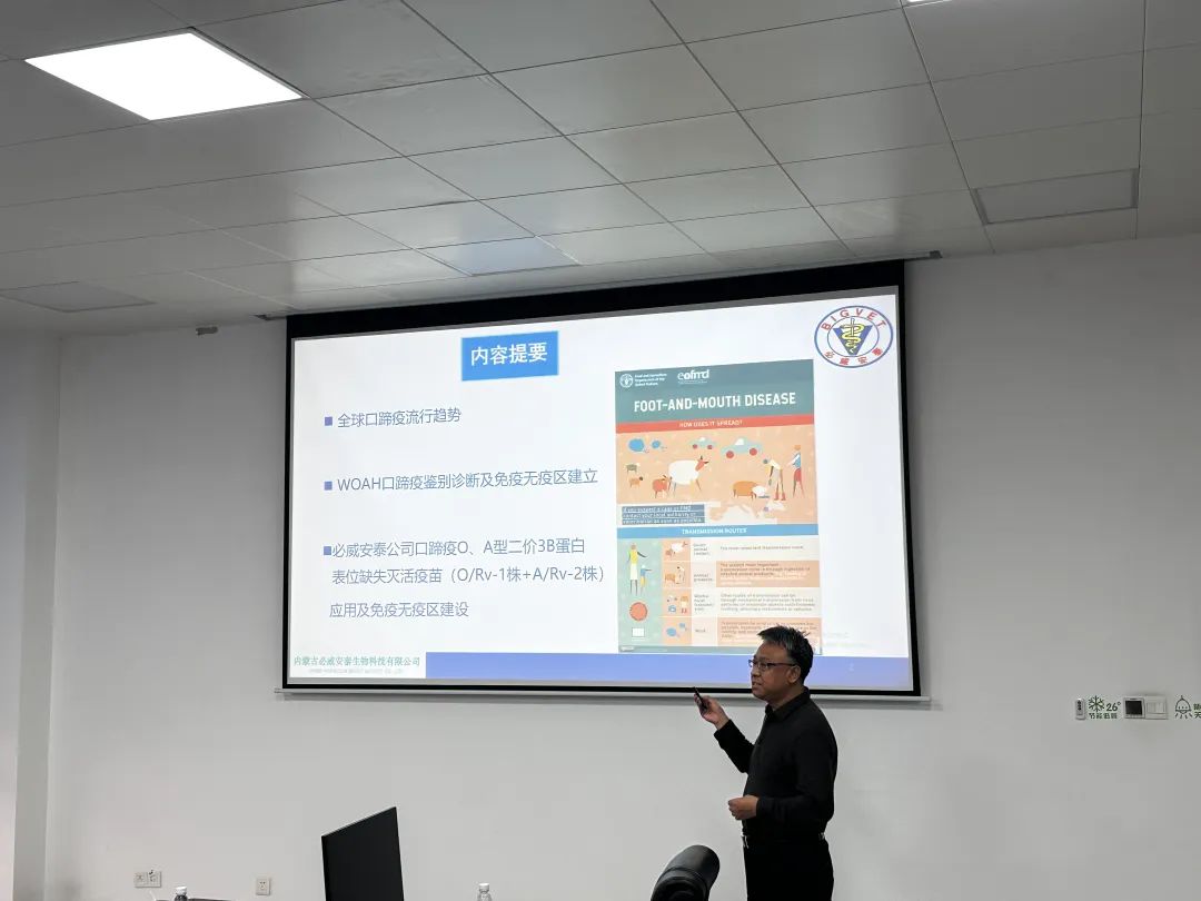 內蒙古必威安泰生物科技有限公司技術(shù)總監謝文強介紹了目前口蹄疫在世界范圍內的流行趨勢和標記型口蹄疫疫苗的優(yōu)勢及應用。